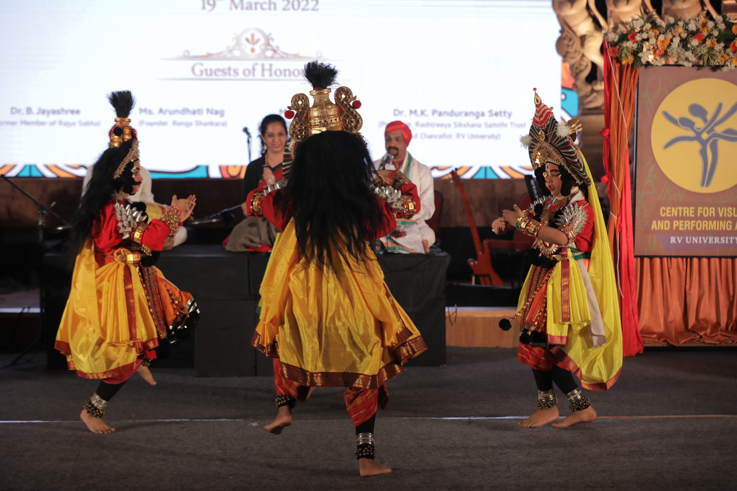 The evening included performances by RV University students showing their newly acquired skills through the energetic Kamsale dance, a scintillating display of Yakshagana by students of Yaksha Degula and a tribute to Lata Mangeshkar by Sangeeta Katti, who sang evergreen melodies.