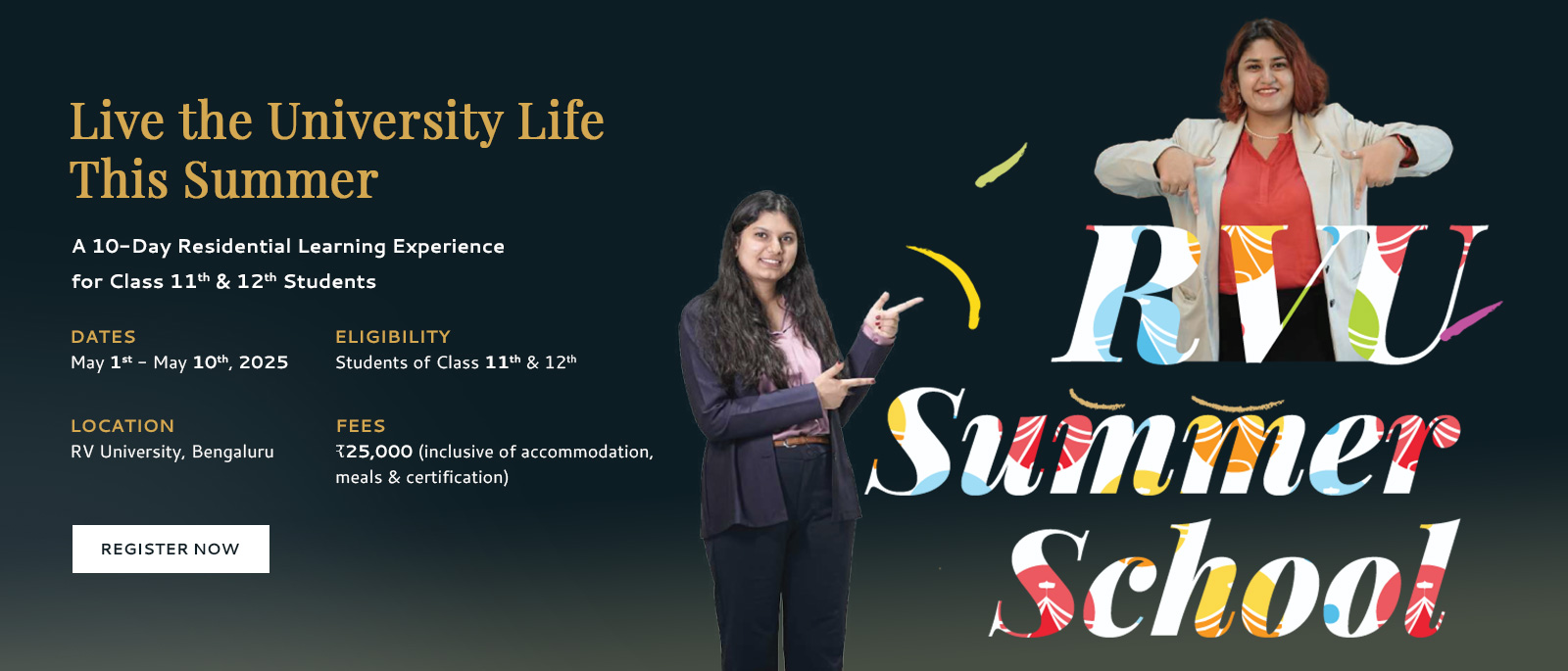 RV University’s first-ever Summer School is designed for students of Class 11th & 12th who are eager to step beyond textbooks and experience interdisciplinary learning.